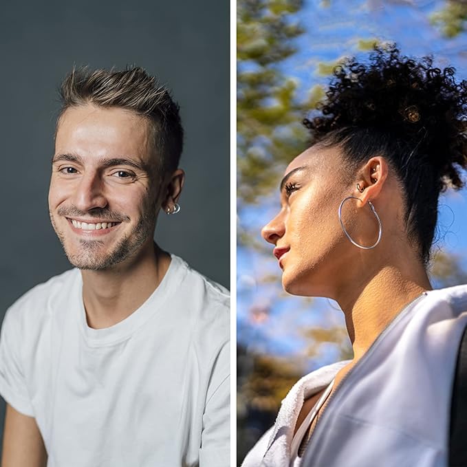 4.Our silver hoop earrings are crafted from high quality materials, without skin irritation. Hypoallergenic and comfortable earrings for most people.
